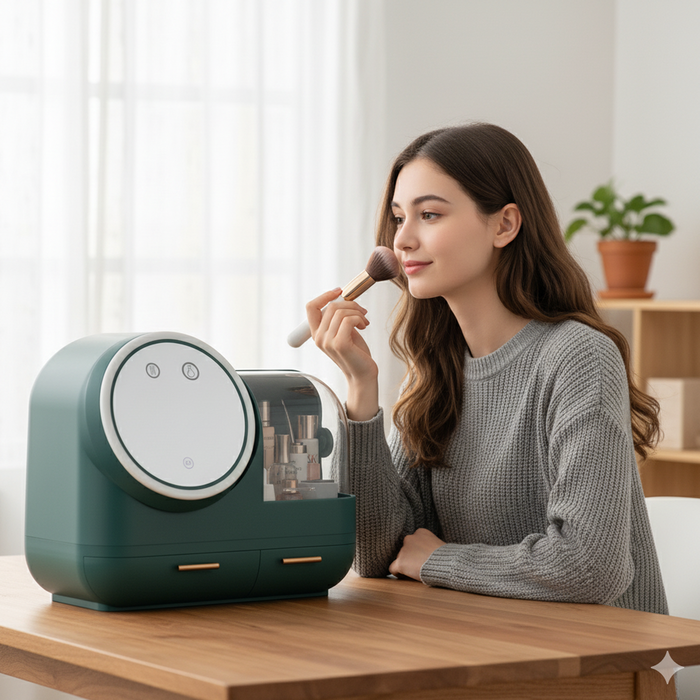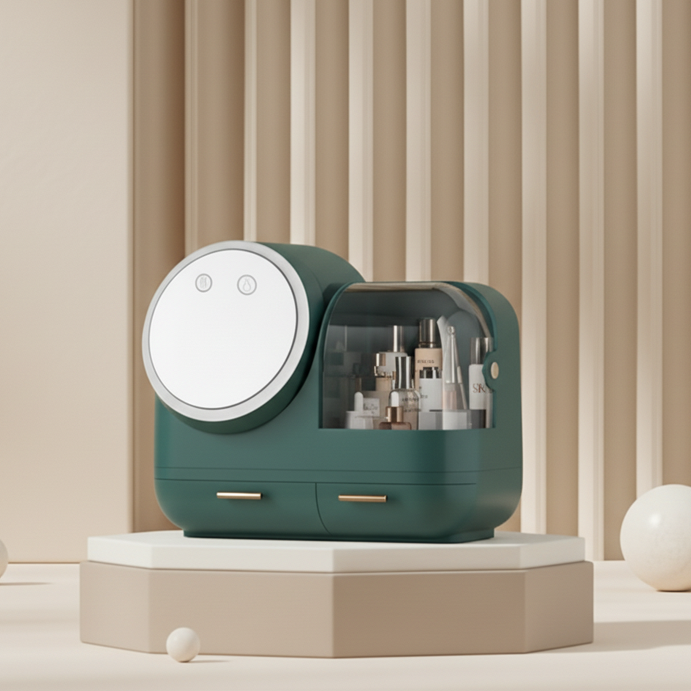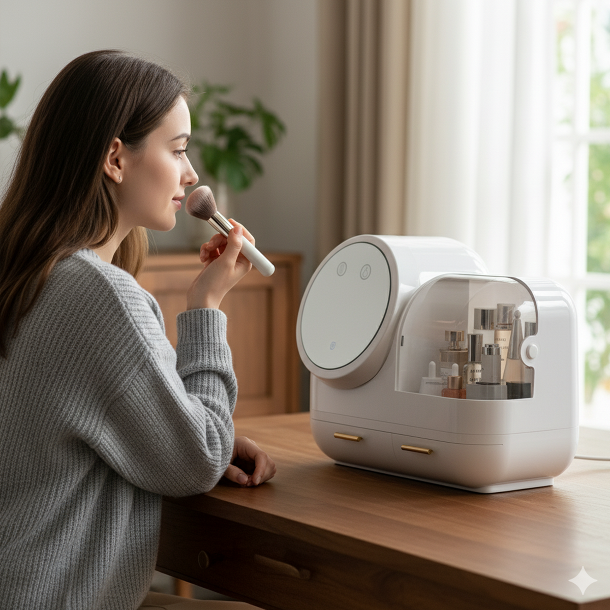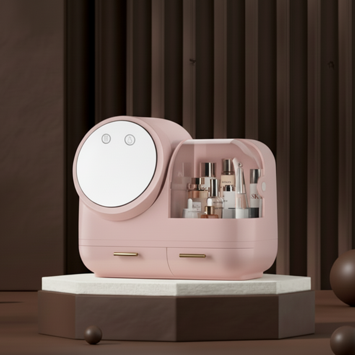 Premium Organiser with Fan, Mirror & Ring Light - White