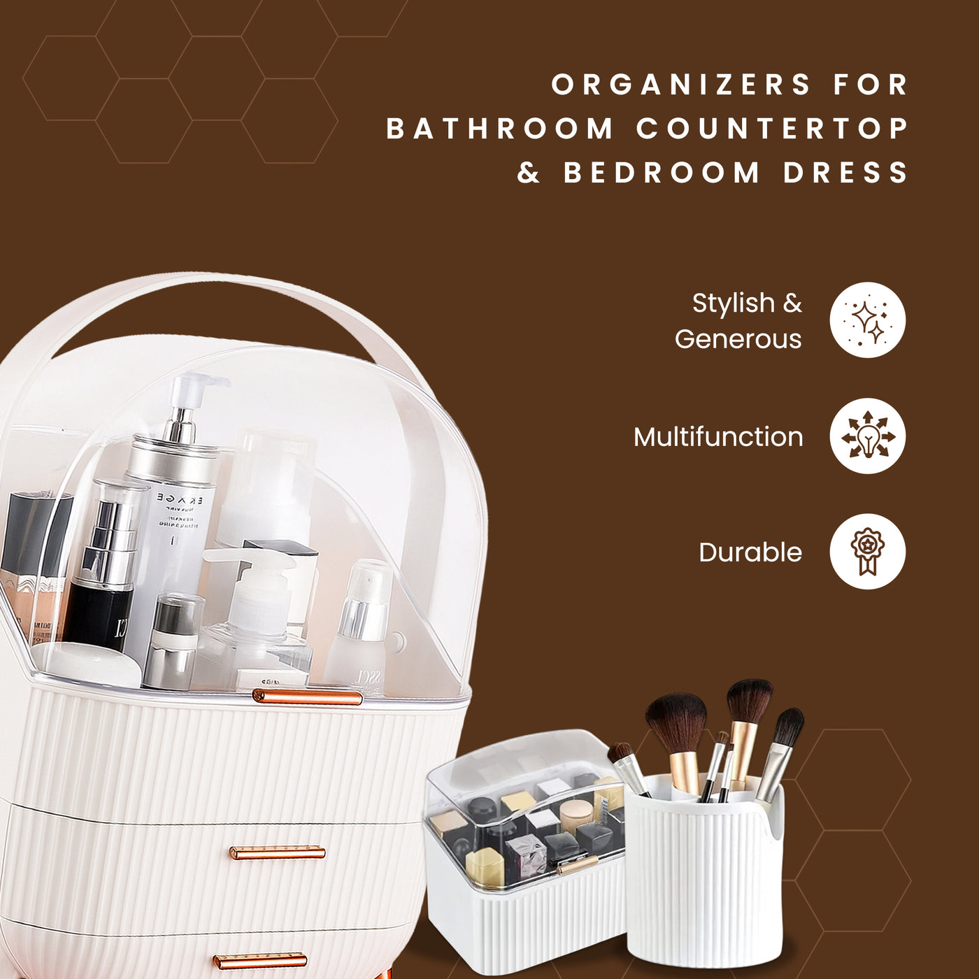 Luxe Organiser with Brush Holder & Lipstick Holder | 3-in-1 Combo |