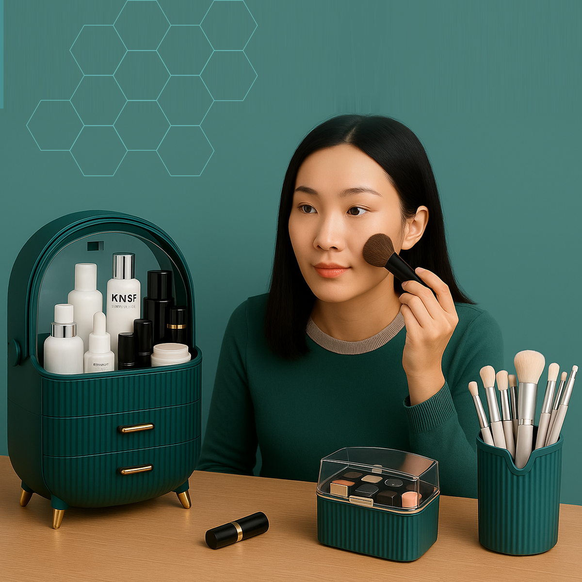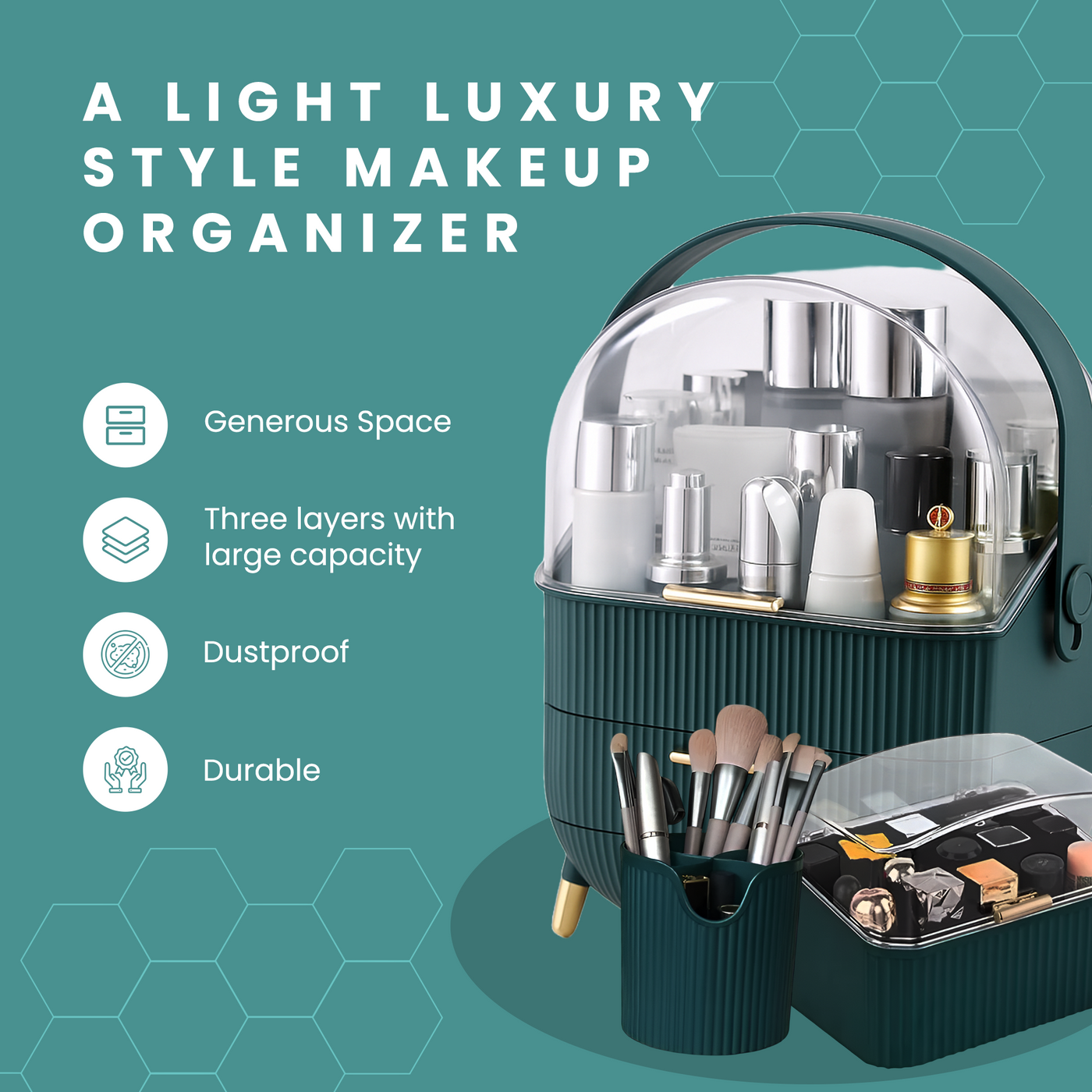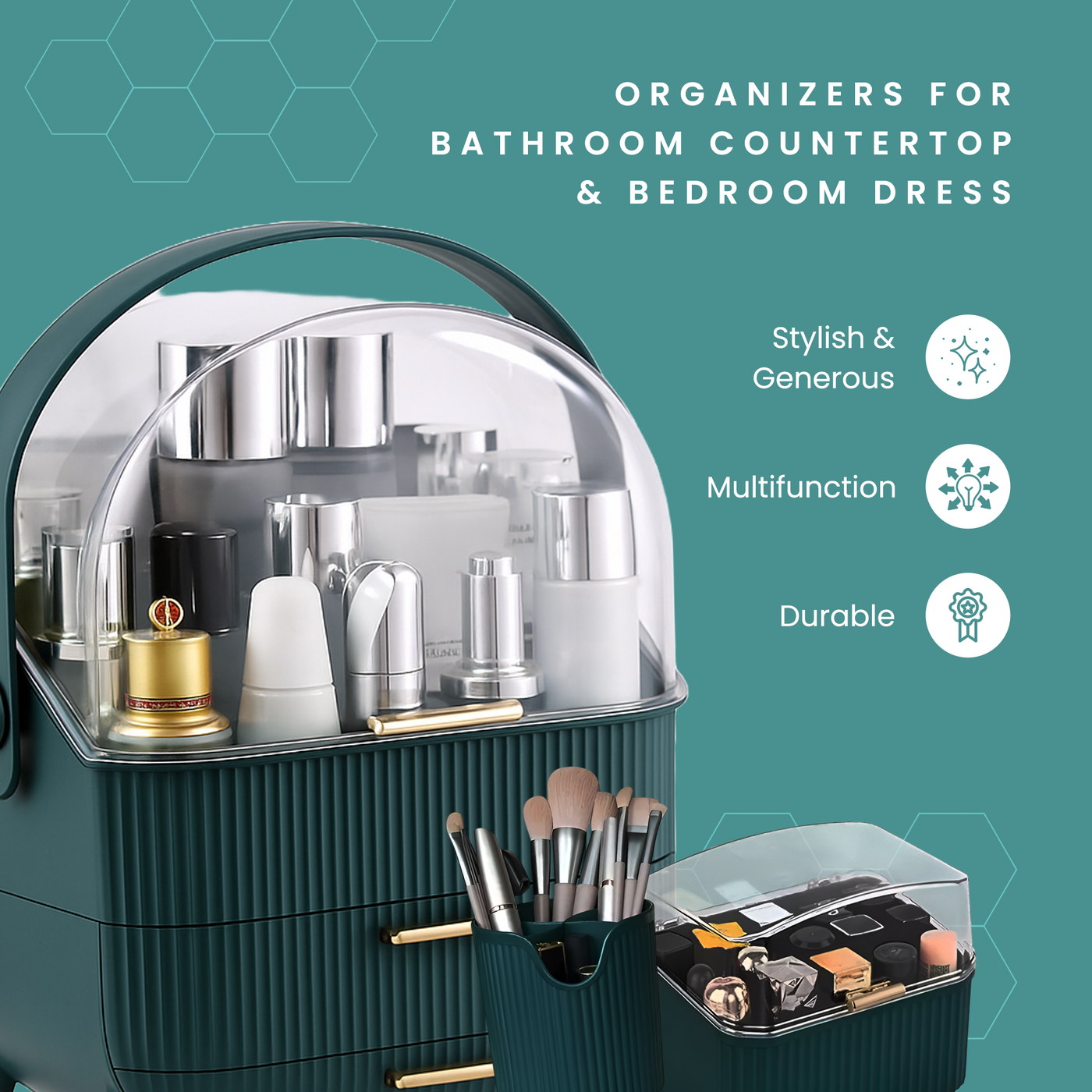 Luxe Organiser with Brush Holder & Lipstick Holder | 3-in-1 Combo | - Green